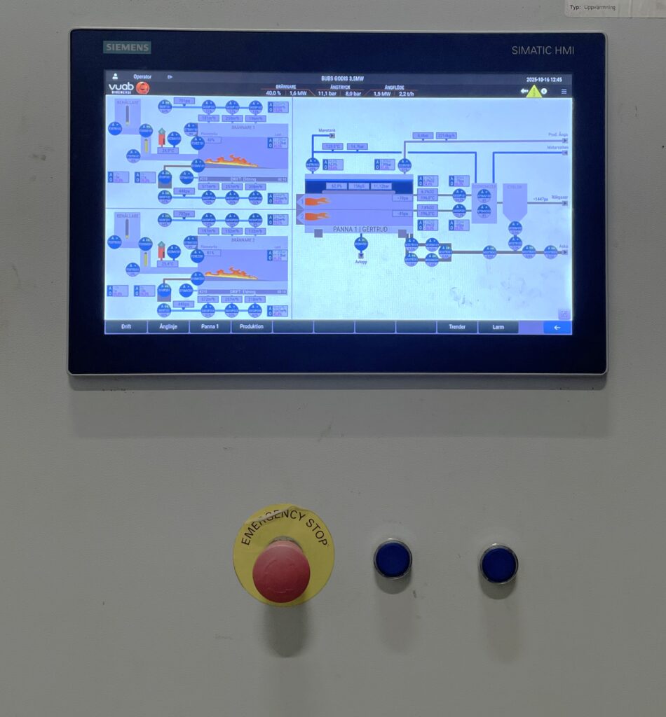 - Uppdaterat PLC-system, inklusive ny HMI-skärm samt separata styrsystem för panna och fabrik.